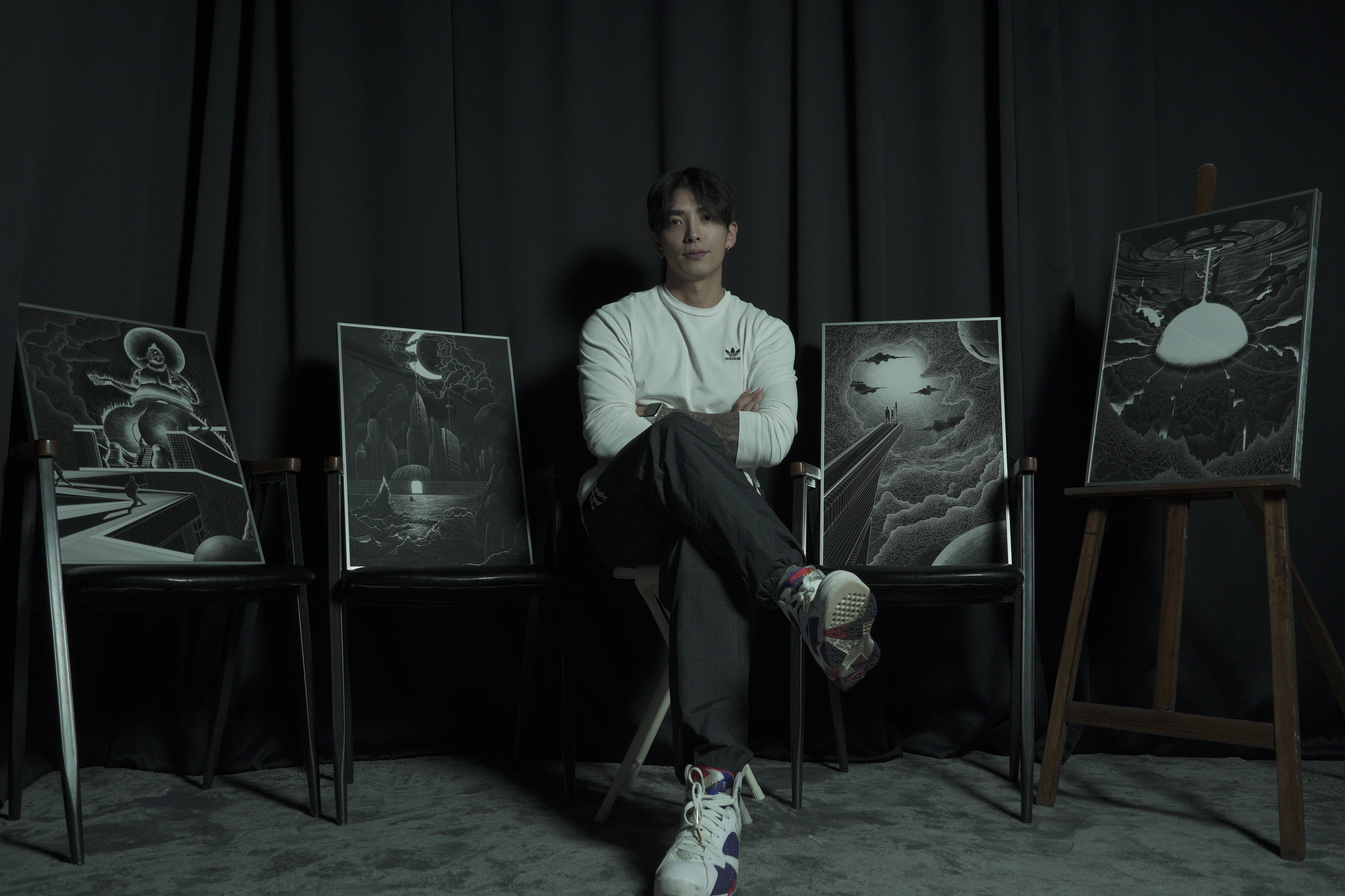 Hansaem’s exploration of loneliness, solitude, and existential anxiety places him within a tradition of existential thinkers who ponder the meaning of existence in an indifferent or absurd world. His works, such as those in the "Laughter and Melancholy" series, delve into the duality of human experience—the façade of happiness we often project versus the internal struggles we face. This tension reflects existential notions of "inauthenticity," a concept prominent in the philosophy of Jean-Paul Sartre and Martin Heidegger, where individuals conform to societal norms at the expense of their own authentic desires. Hansaem also engages with phenomenological ideas, particularly through his focus on perception and the lived experience. His art challenges viewers to see beyond the superficial, encouraging a deeper engagement with the world as it is experienced subjectively. This approach resonates with the phenomenological emphasis on personal perception as the primary source of knowledge. Hansaem’s work invites viewers to reconsider their perceptions and to recognize how their viewpoints are shaped by cultural and personal biases. Philosophically, Hansaem is also concerned with critiquing cultural and societal constructs. Through his work, he questions constructs like success, happiness, and identity, suggesting that these are not merely personal achievements or states but are deeply influenced by societal expectations. His critique extends to the ways in which society imposes roles and behaviors, echoing the Frankfurt School's critical theory, which scrutinizes the ways in which culture upholds and masks power structures. In many ways, Hansaem’s art represents a dialogue between the self and society. He reflects on how individuals navigate their social identities and personal truths within a network of societal pressures and expectations. This dialogue is not only a reflection but also a form of resistance—a way to reclaim personal narrative from the homogenizing forces of society. Finally, Hansaem embodies the philosophical idea that art is a means of understanding. Through his artistic processes and the themes he explores, he uses art as a tool to probe deep philosophical questions about life, meaning, and human connectivity. His work serves as a medium for not only self-expression but also for philosophical inquiry, pushing both the artist and his audience to confront uncomfortable truths about themselves and the world they inhabit. Hansaem’s philosophical perspective is richly layered, incorporating existential and phenomenological insights with a critical eye toward societal norms. His art offers a profound reflection on human existence, inviting a contemplative engagement that challenges viewers to think deeply about the nature of their own lives and the constructs that shape them.